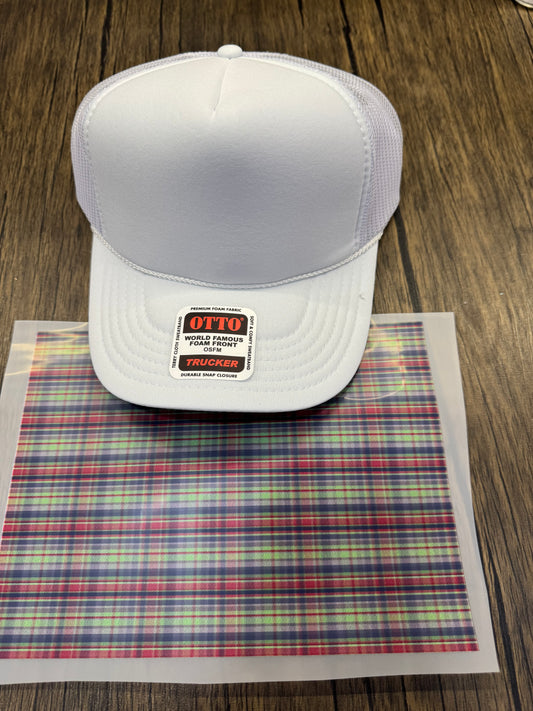 Red Green Blue Plaid Single Hat Bill DTF Prints